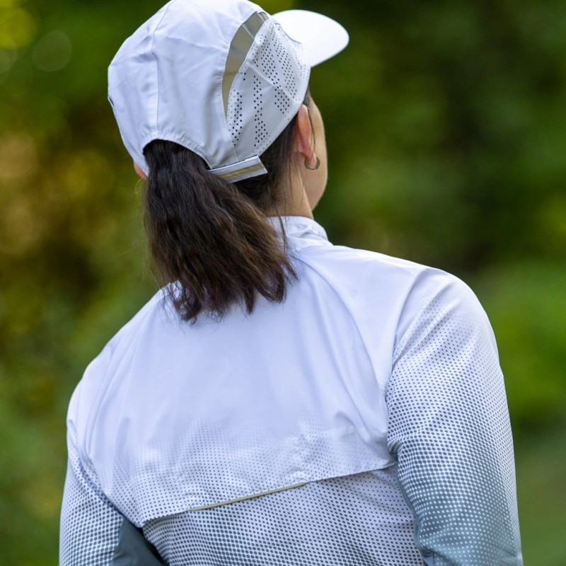 Běžeckou bundu Grace jsme navrhli v novém propracovaném střihu. Vyrobili jsme ji z ultralehkého materiálu, takže o bundě při běhu téměř nevíte a zároveň vás na nějakou dobu ochrání i před deštěm. Komfort zaručuje odvětraná zadní část.