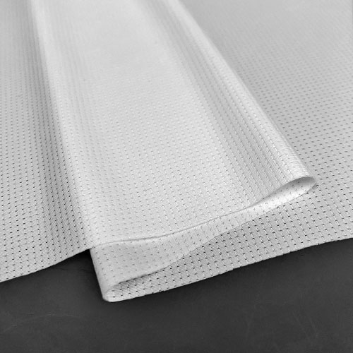 Pevná tkanina s otvormi určená na tlač bannerov.